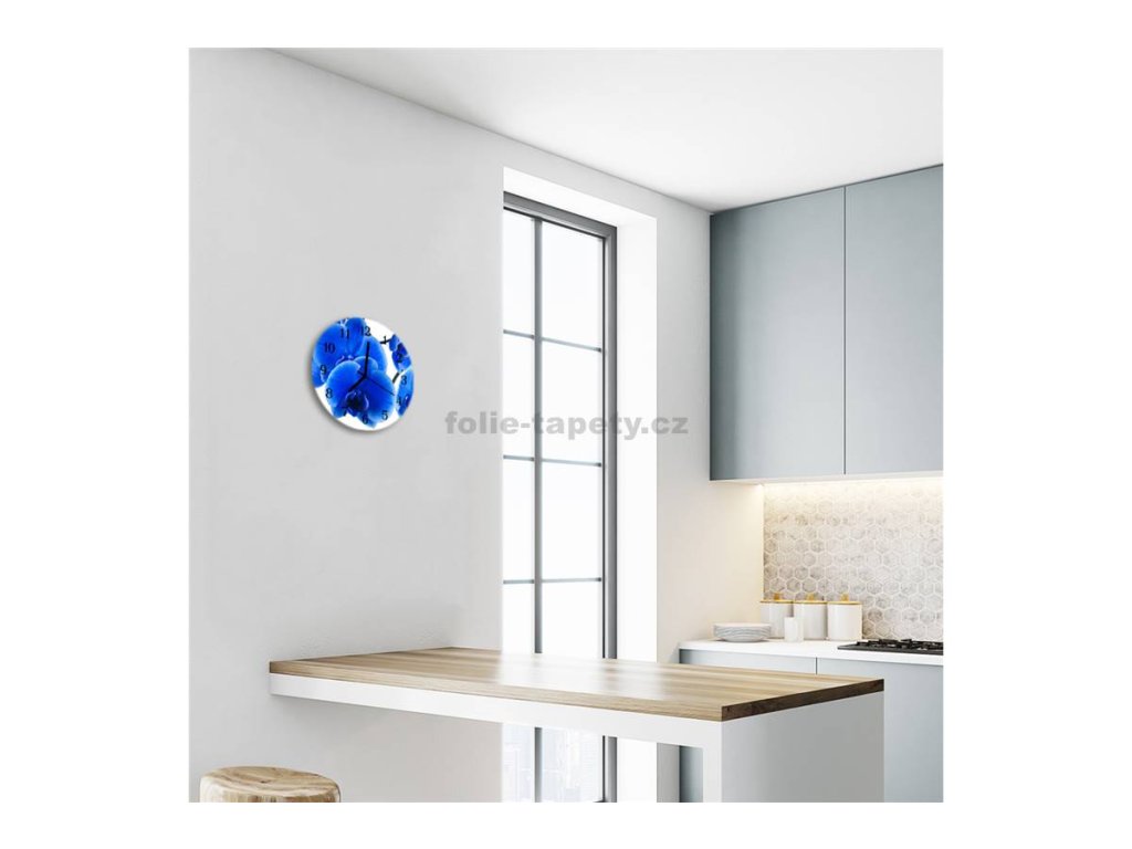 Nástěnné hodiny obrazové na skle - Modrá orchidej