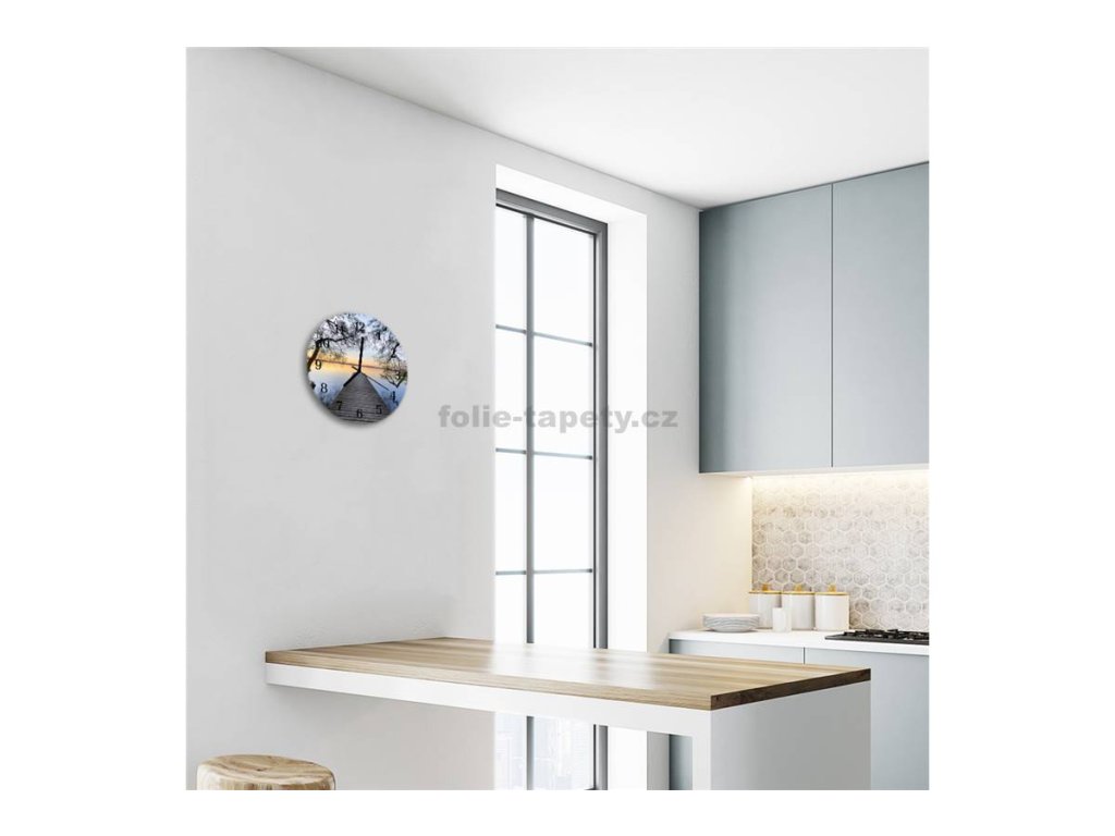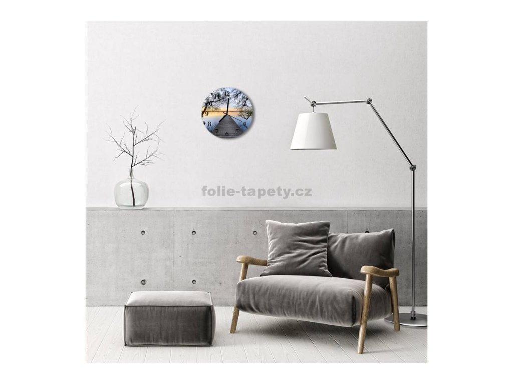 Nástěnné hodiny obrazové na skle - Molo u jezera