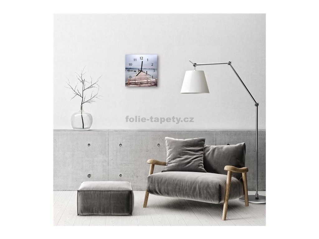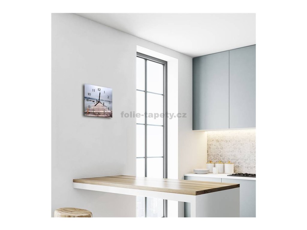 Nástěnné hodiny obrazové na skle - Molo u moře