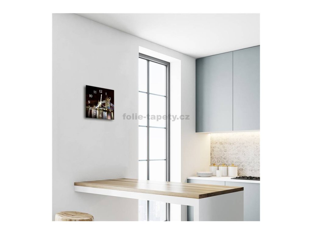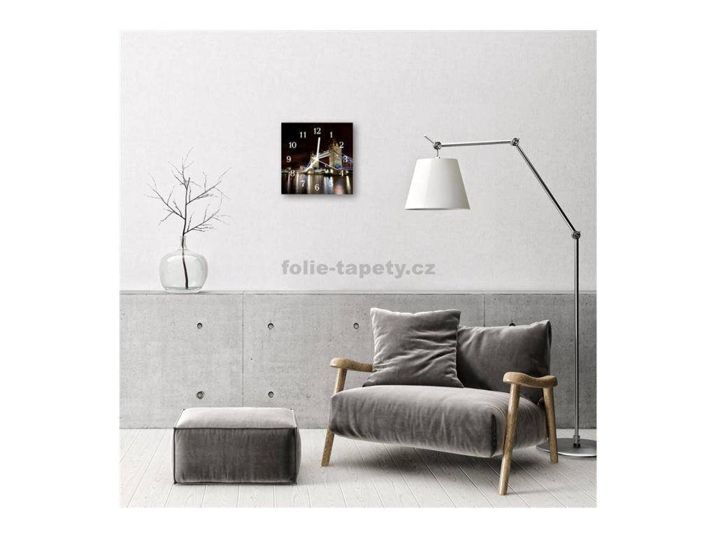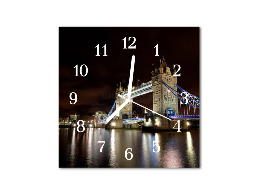 Nástěnné hodiny obrazové na skle - Most osvětlený