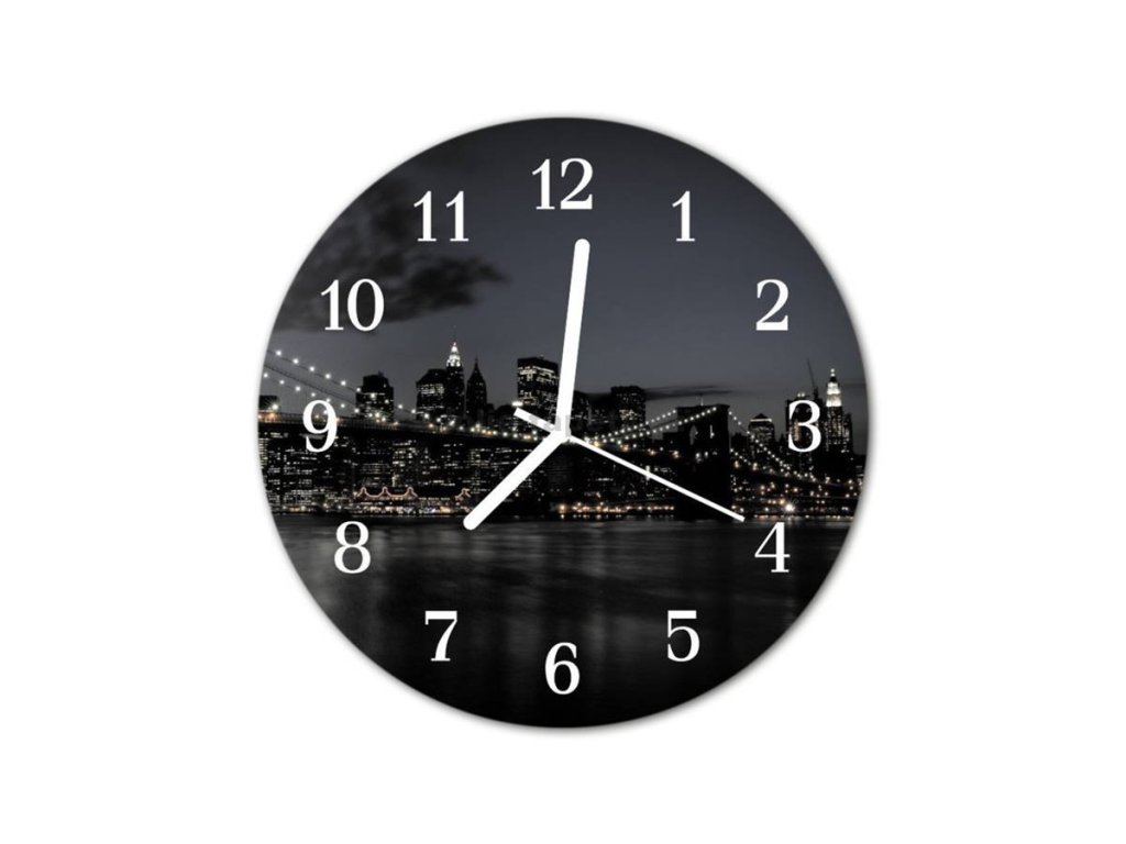 Nástěnné hodiny obrazové na skle - Most v noci