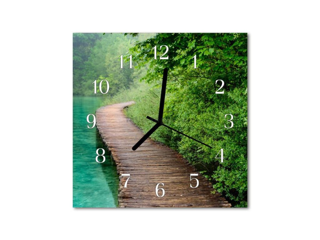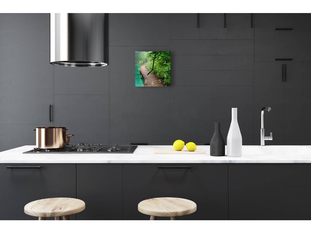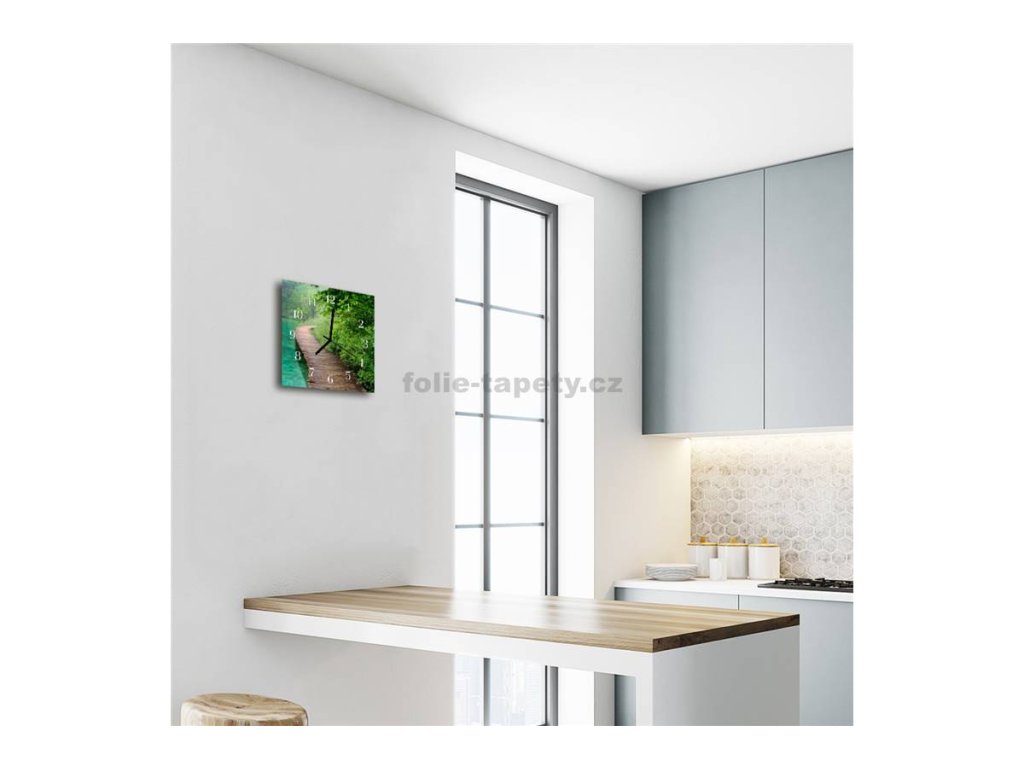 Nástěnné hodiny obrazové na skle - Most v pralese
