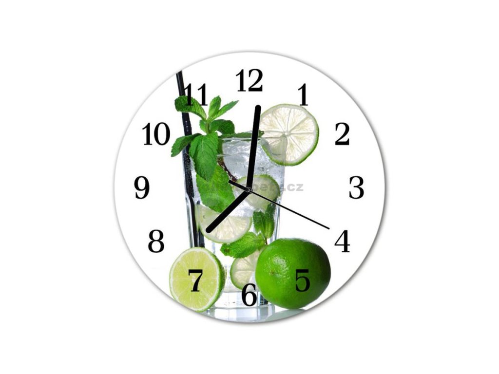 Nástěnné hodiny obrazové na skle - Nápoj s limetkou