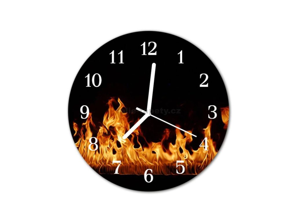 Nástěnné hodiny obrazové na skle - Oheň