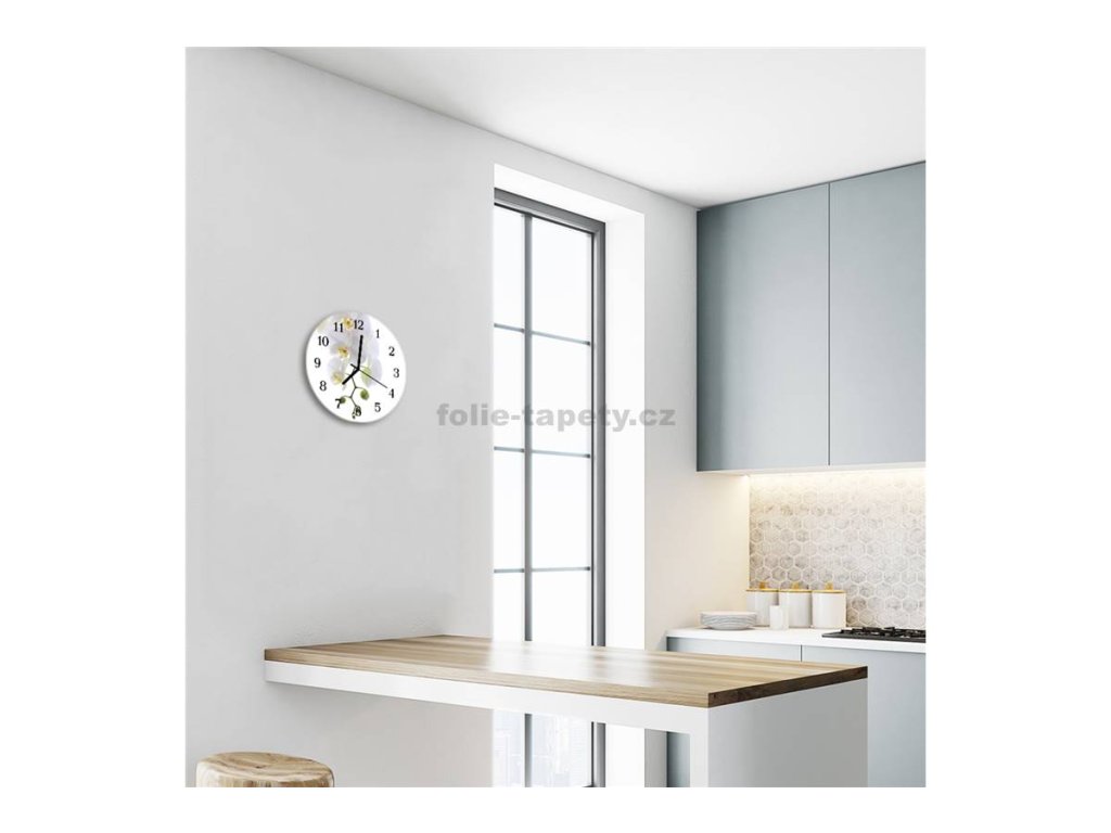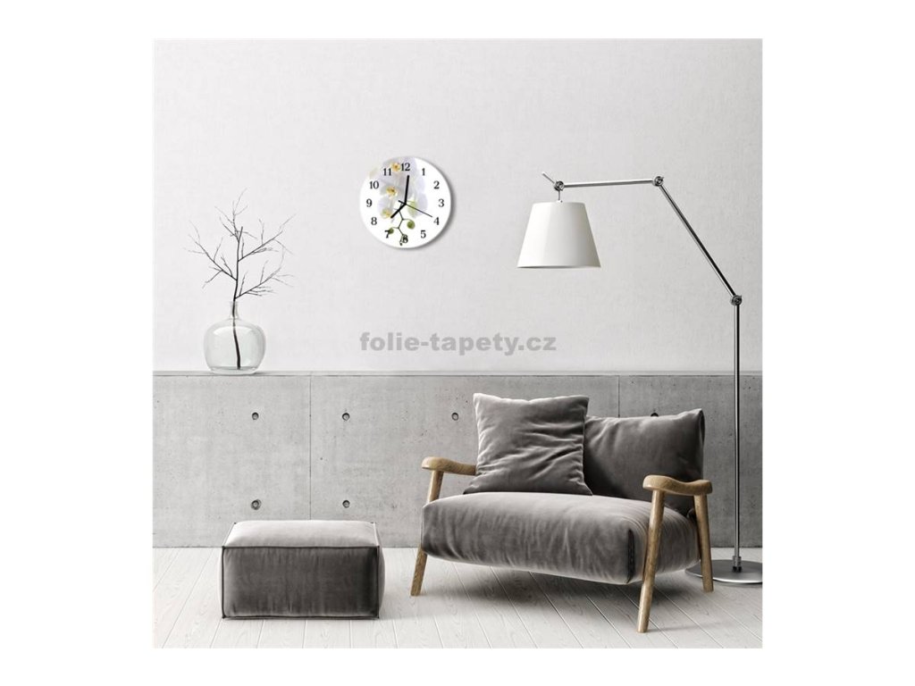 Nástěnné hodiny obrazové na skle - Orchidej bílá III