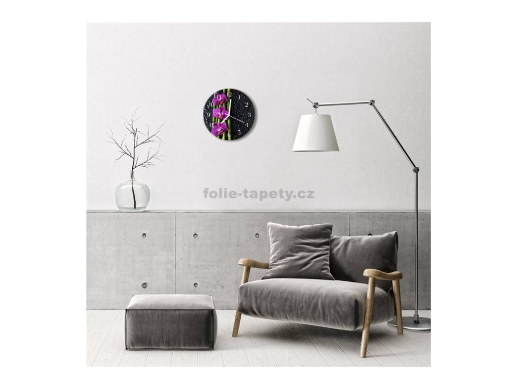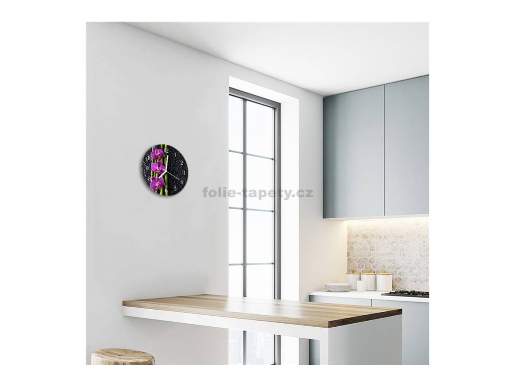 Nástěnné hodiny obrazové na skle - Orchidej fialová I