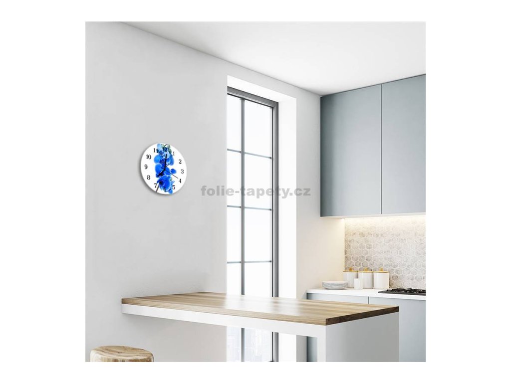 Nástěnné hodiny obrazové na skle - Orchidej modrá I