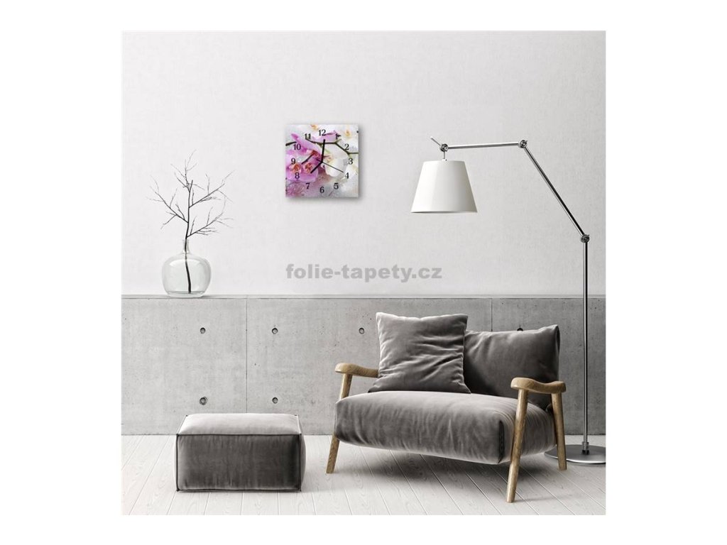 Nástěnné hodiny obrazové na skle - Orchidej růžová a bílá