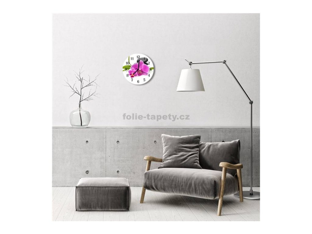 Nástěnné hodiny obrazové na skle - Orchidej růžová III