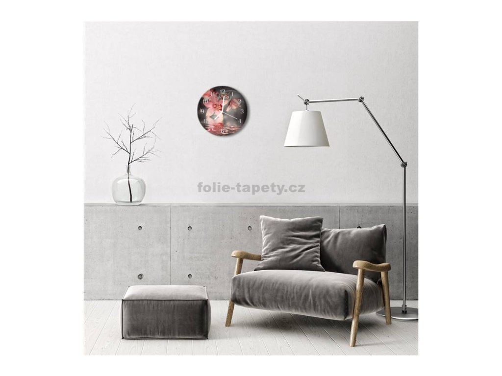 Nástěnné hodiny obrazové na skle - Orchidej starorůžová
