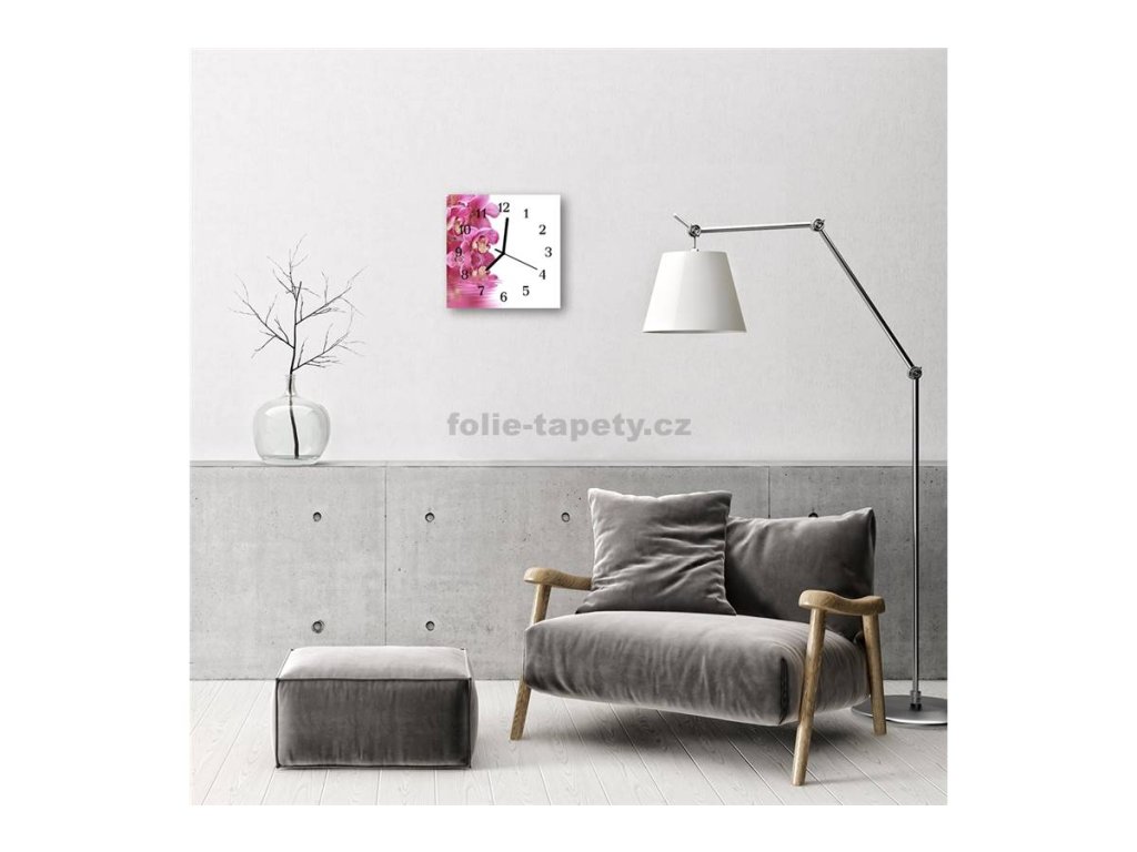Nástěnné hodiny obrazové na skle - Orchidej tmavě růžová