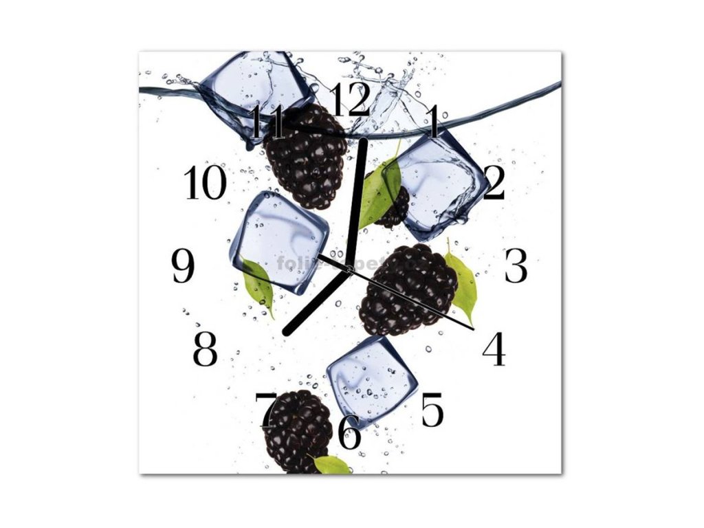 Nástěnné hodiny obrazové na skle - Ostružina a led