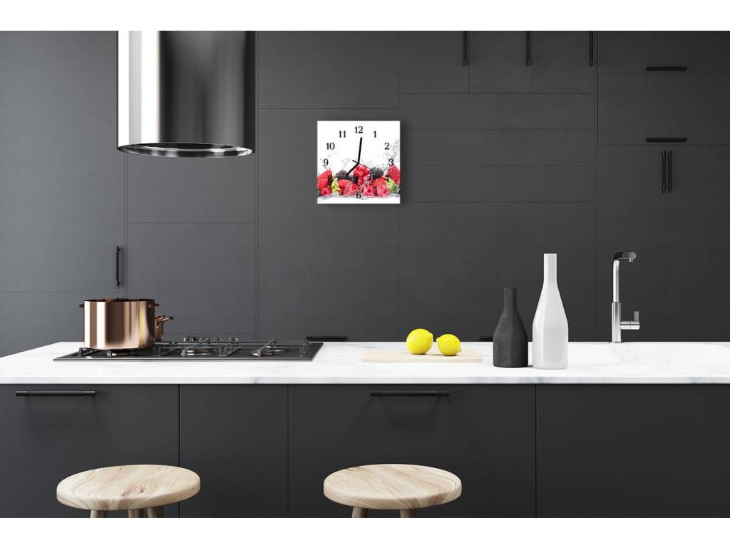 Nástěnné hodiny obrazové na skle - Ovoce ve vodě II