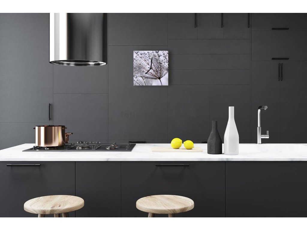 Nástěnné hodiny obrazové na skle - Pampeliška a rosa