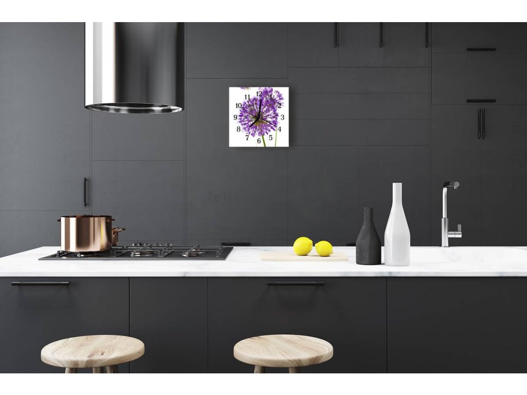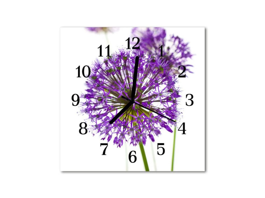 Nástěnné hodiny obrazové na skle - Pampeliška fialová