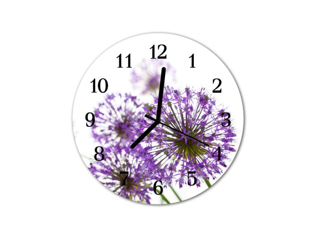 Nástěnné hodiny obrazové na skle - Pampeliška fialová I