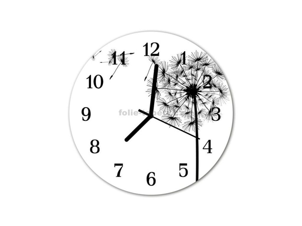 Nástěnné hodiny obrazové na skle - Pampeliška kreslená