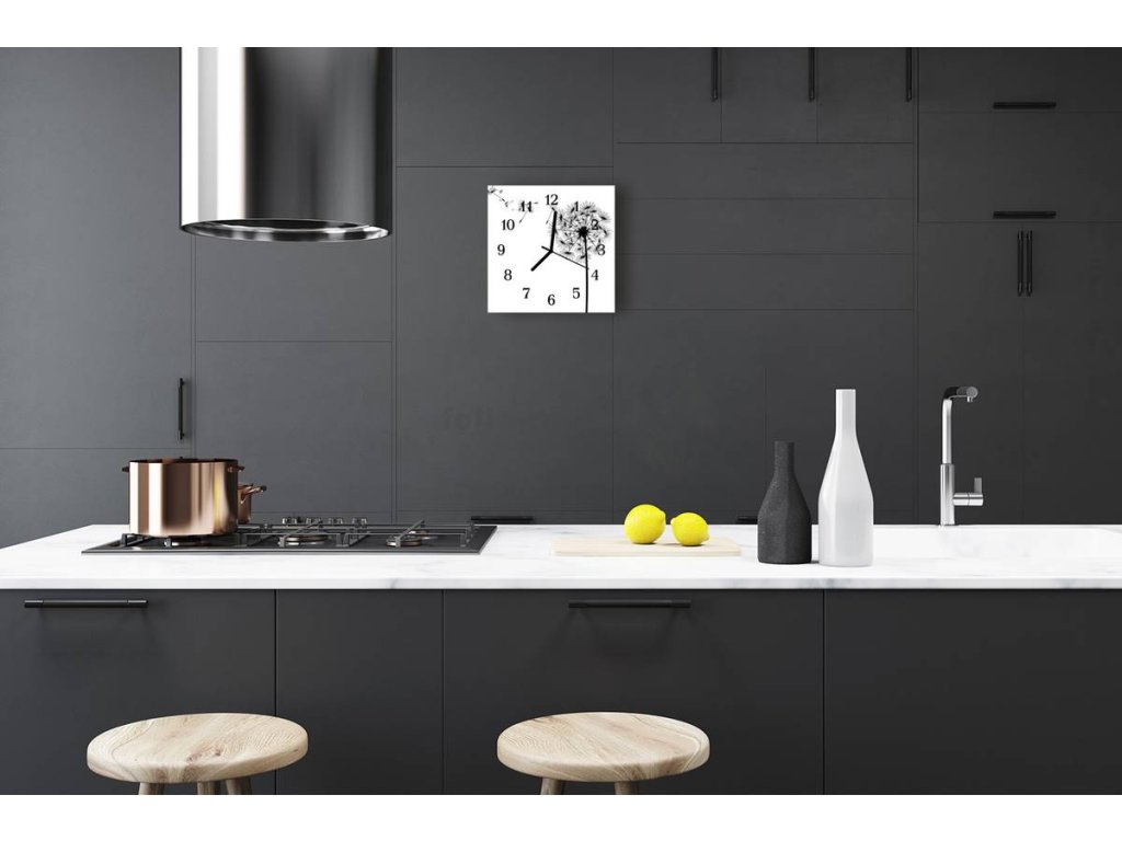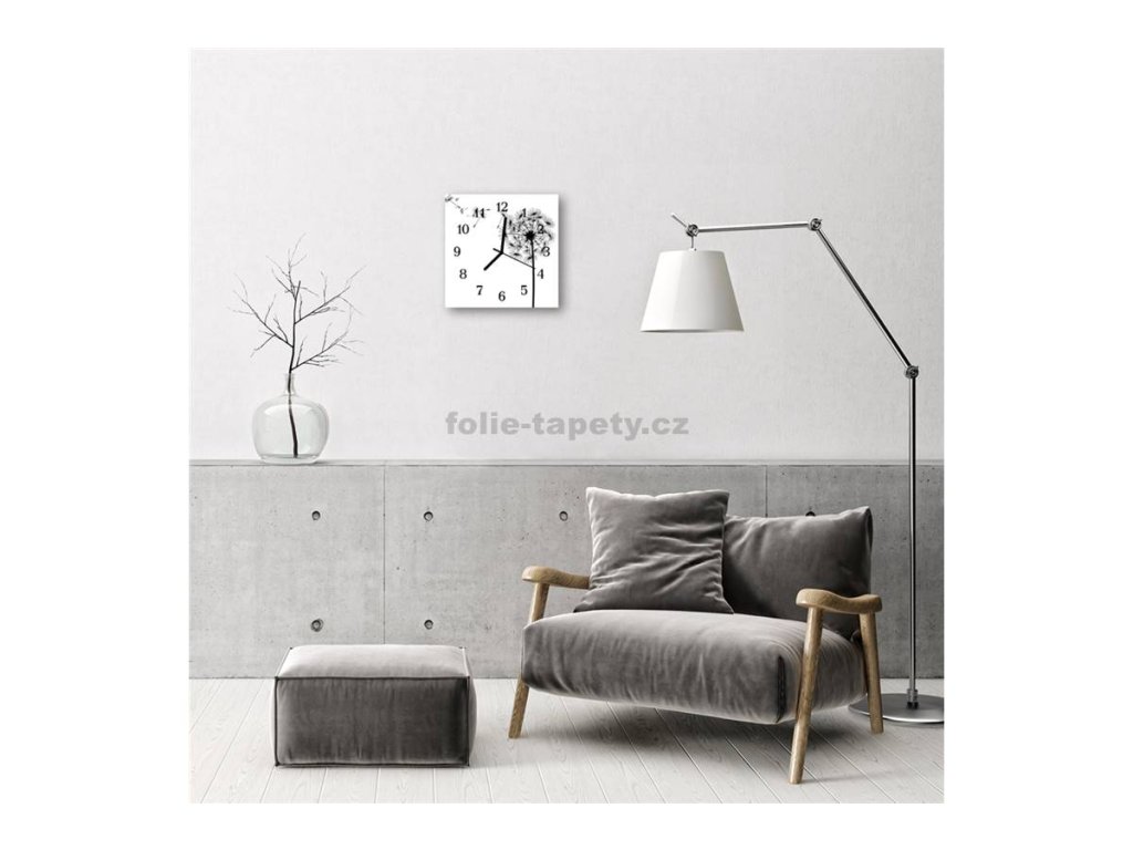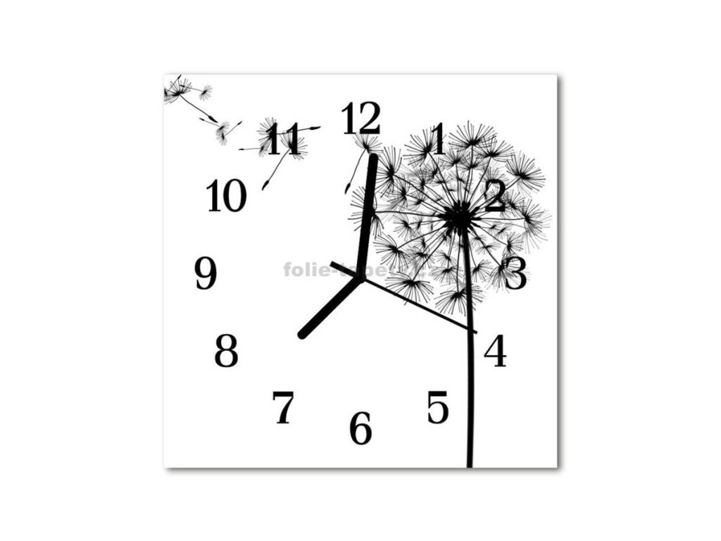 Nástěnné hodiny obrazové na skle - Pampeliška kreslená
