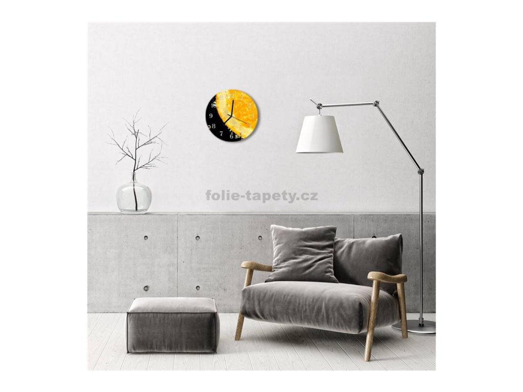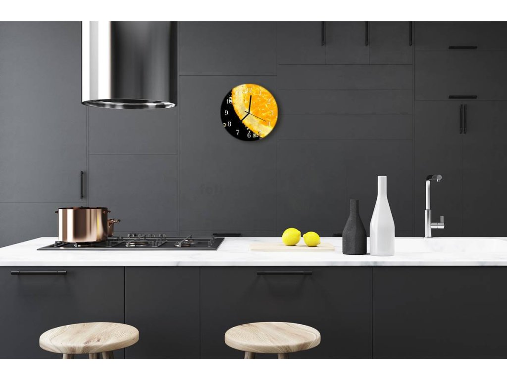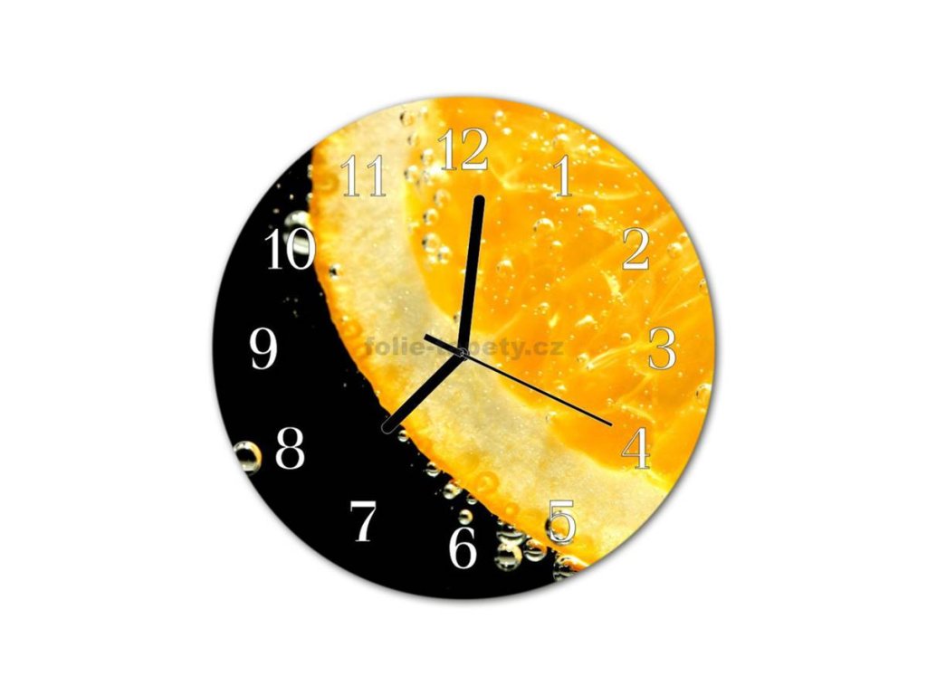 Nástěnné hodiny obrazové na skle - Plátek pomeranče