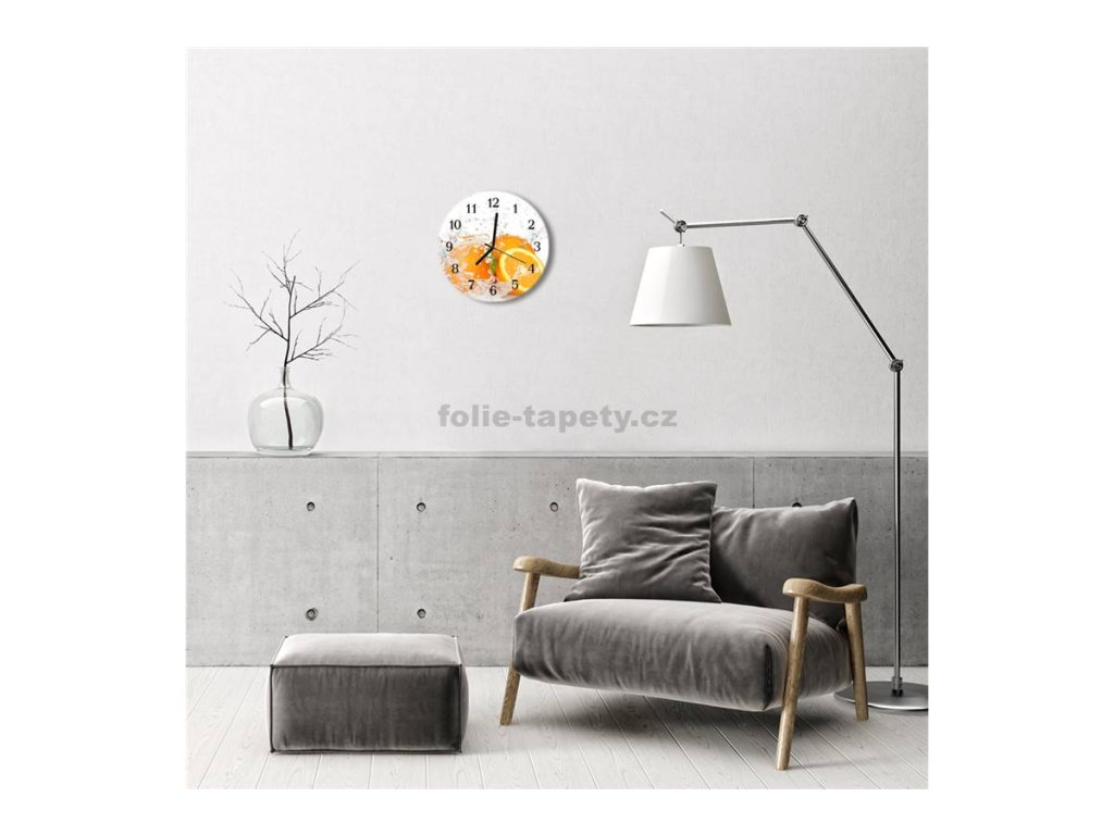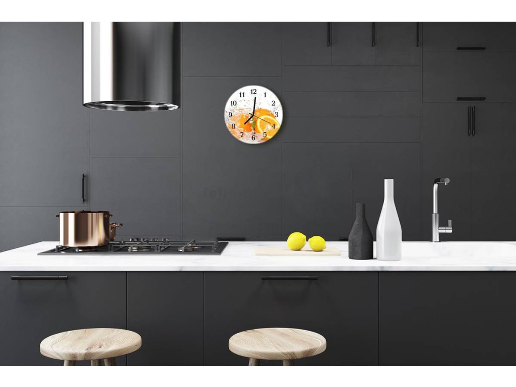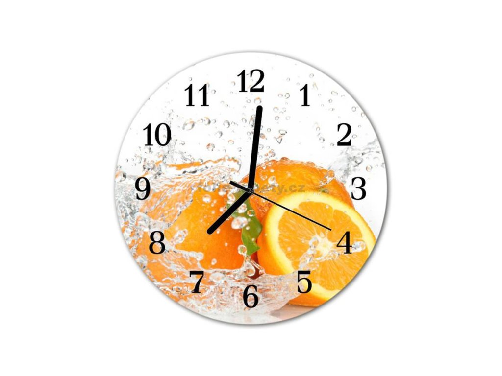 Nástěnné hodiny obrazové na skle - Pomeranče ve vodě