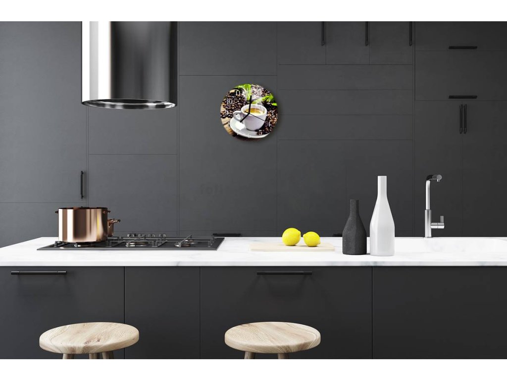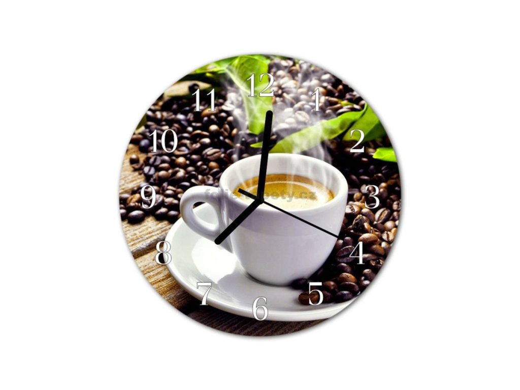 Nástěnné hodiny obrazové na skle - Presso v šálku