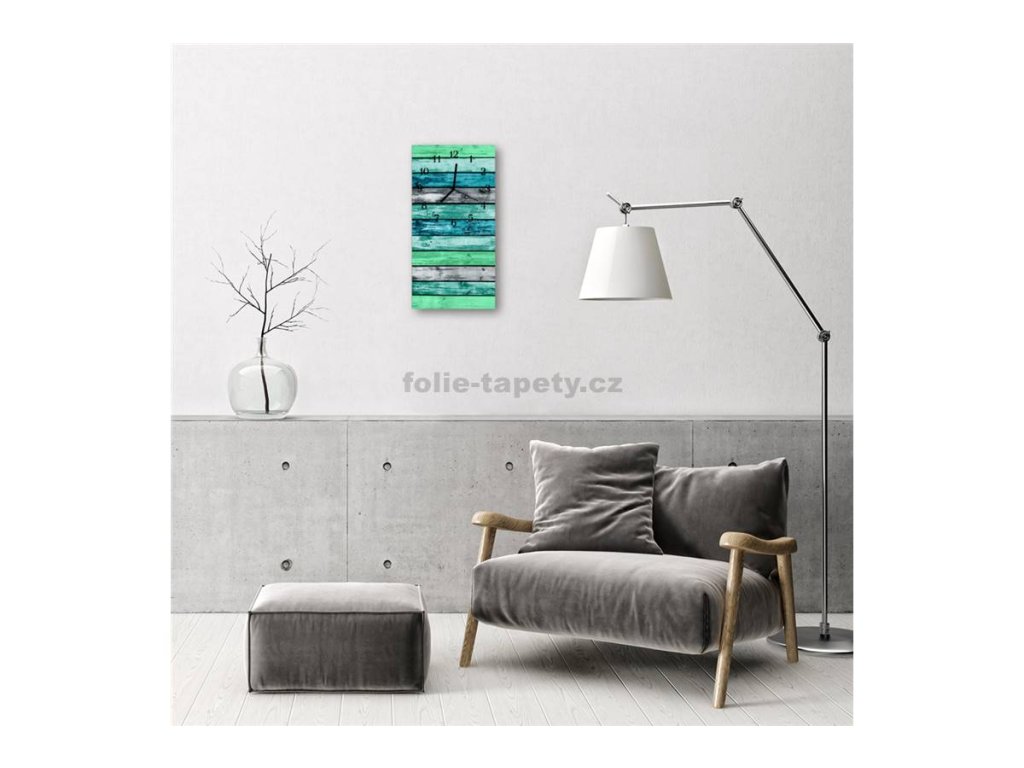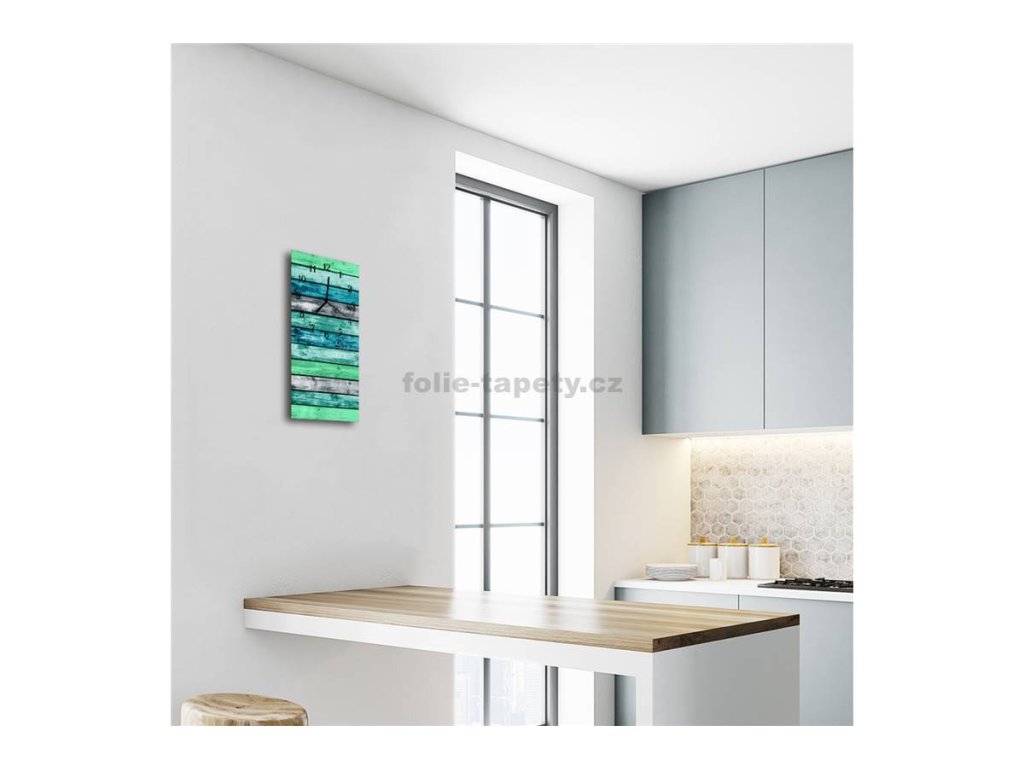 Nástěnné hodiny obrazové na skle - Prkna barevné