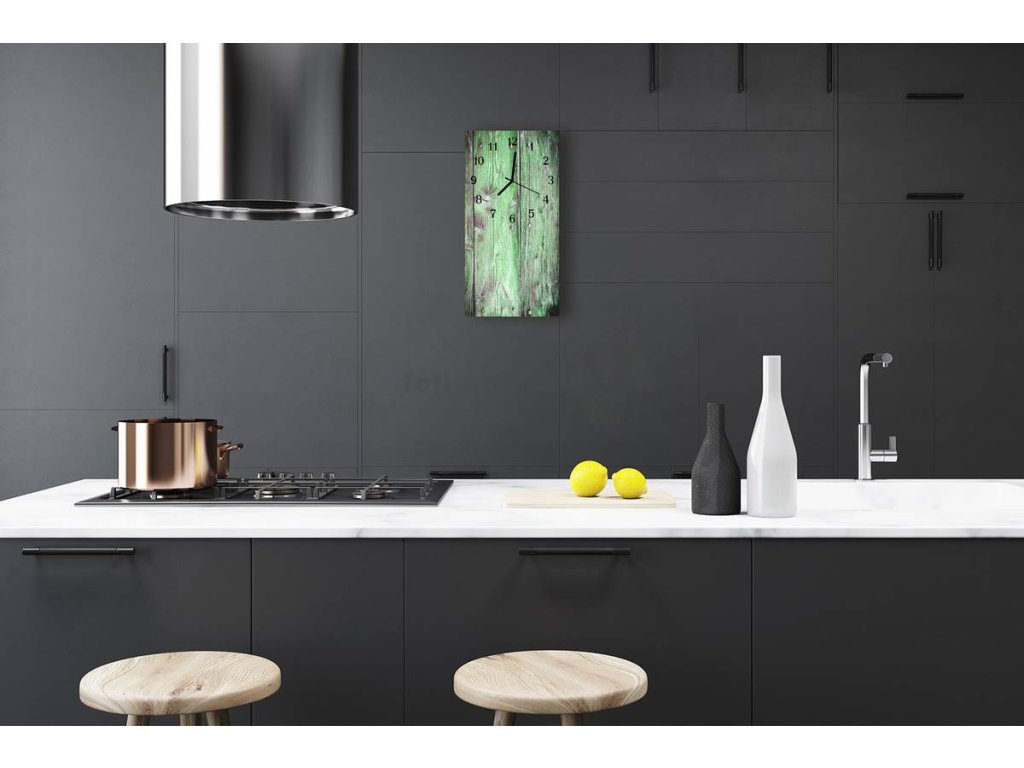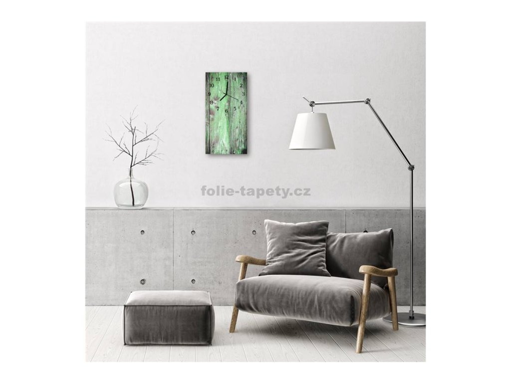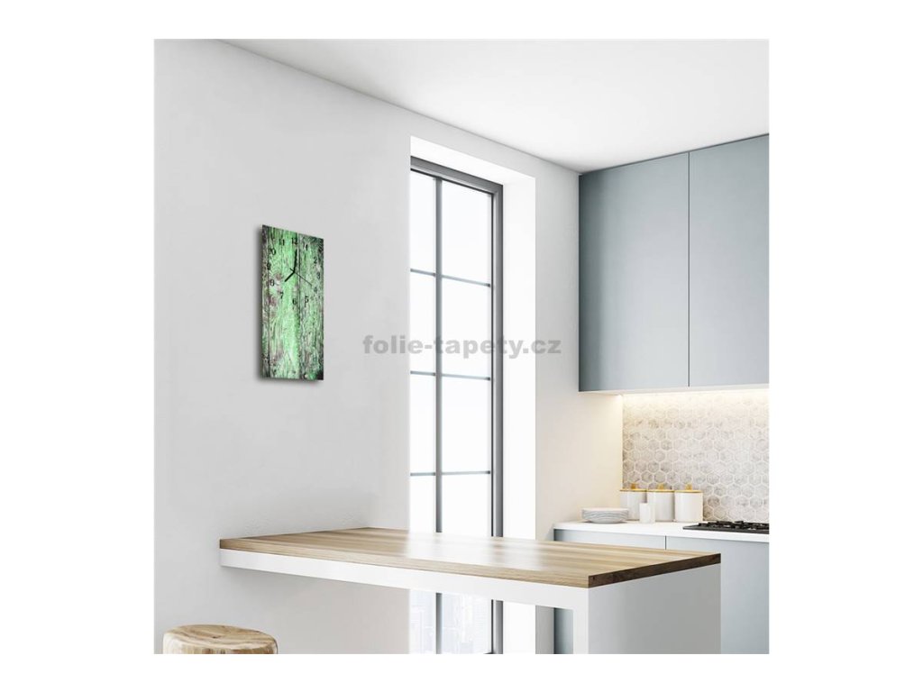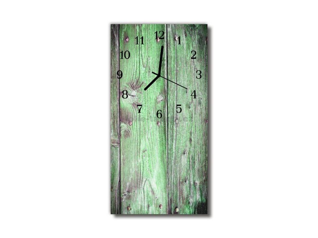 Nástěnné hodiny obrazové na skle - Prkna zelenkavé