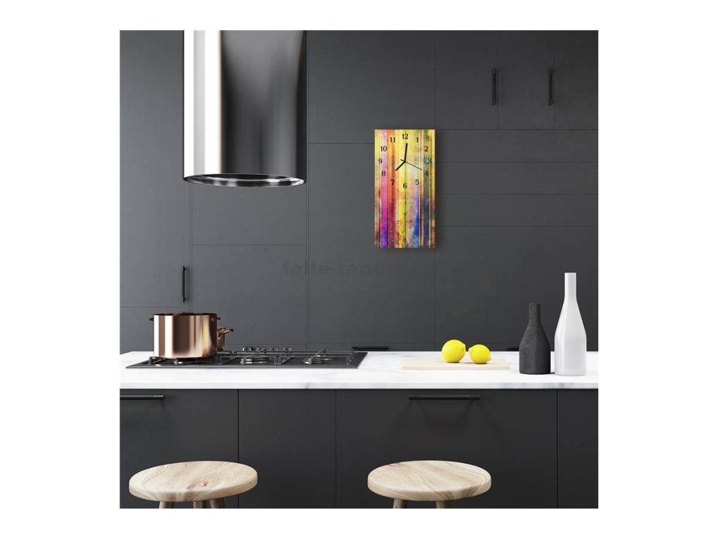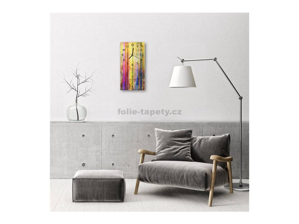 Nástěnné hodiny obrazové na skle - Proužky barevné