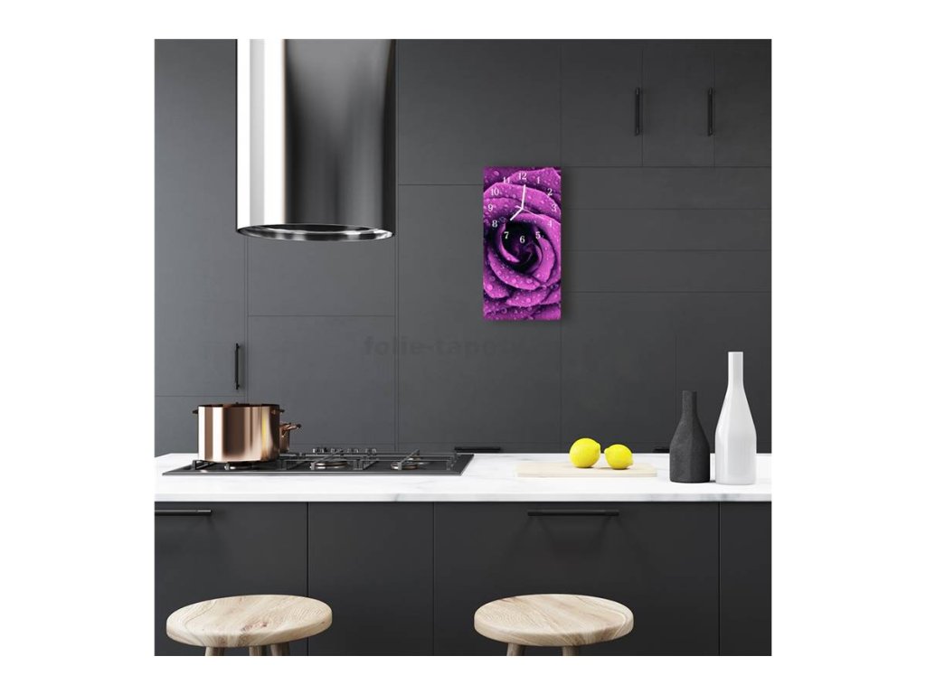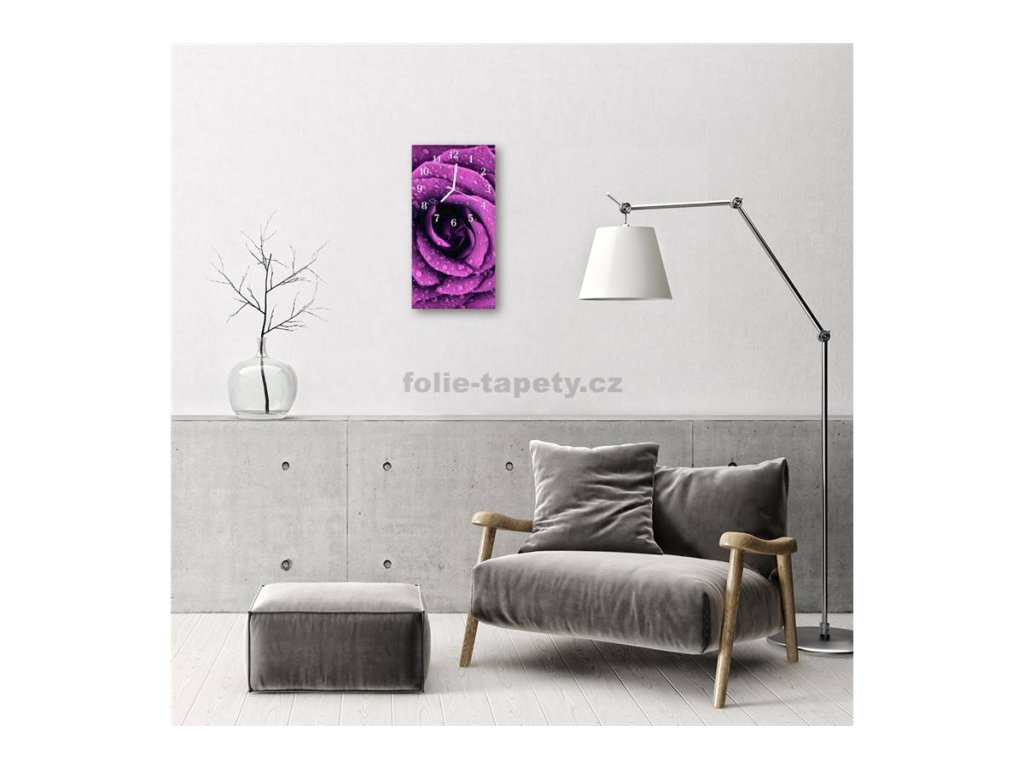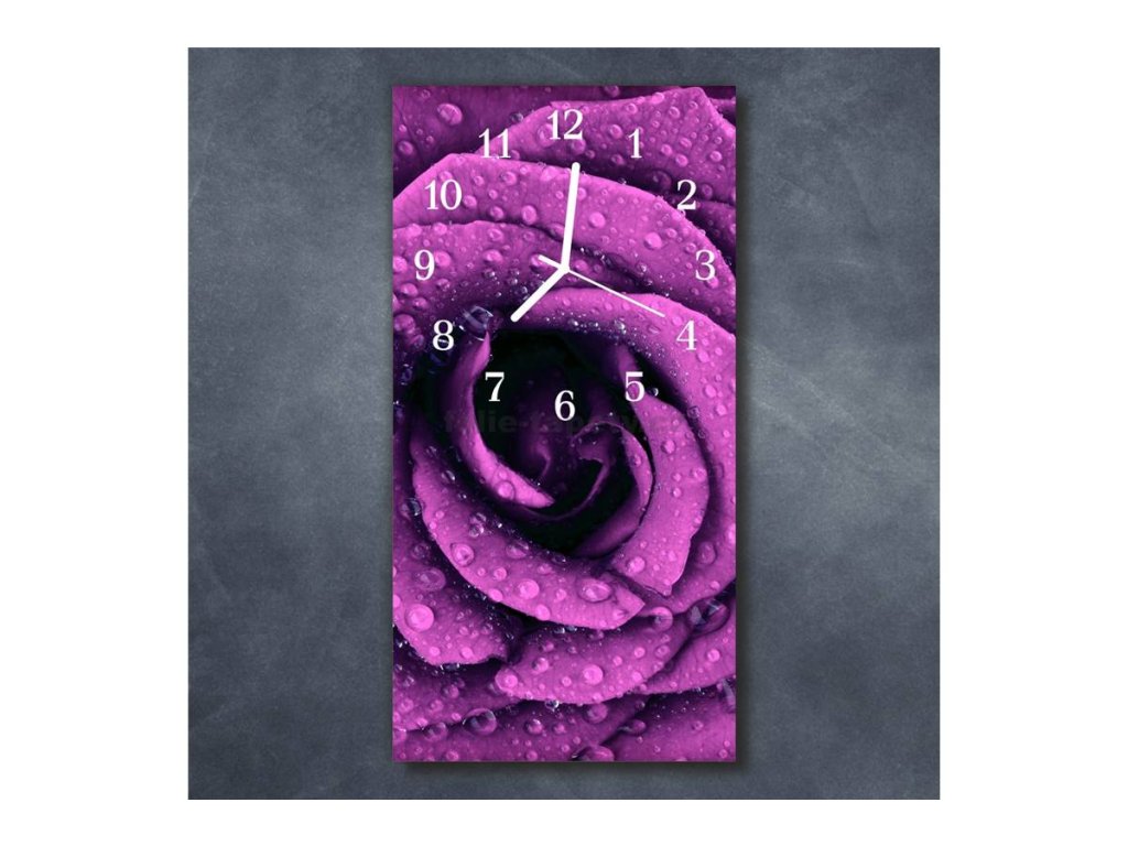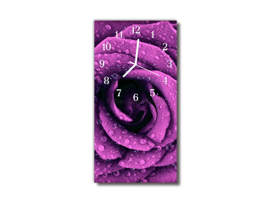 Nástěnné hodiny obrazové na skle - Růže fialová
