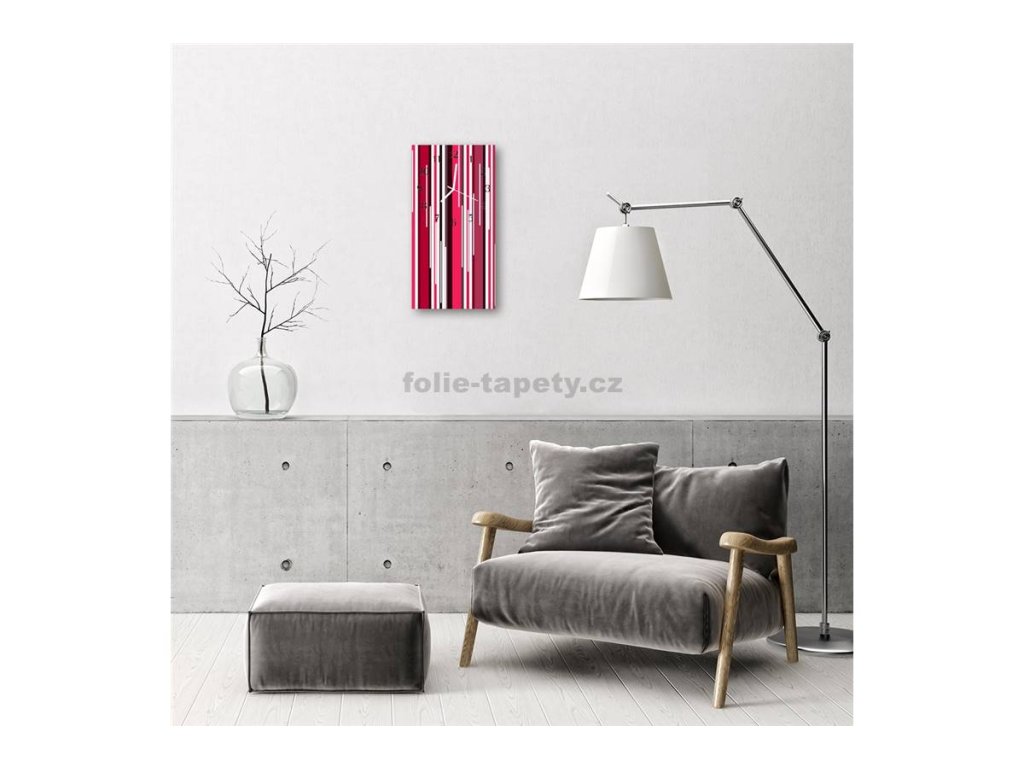 Nástěnné hodiny obrazové na skle - Růžové pruhy