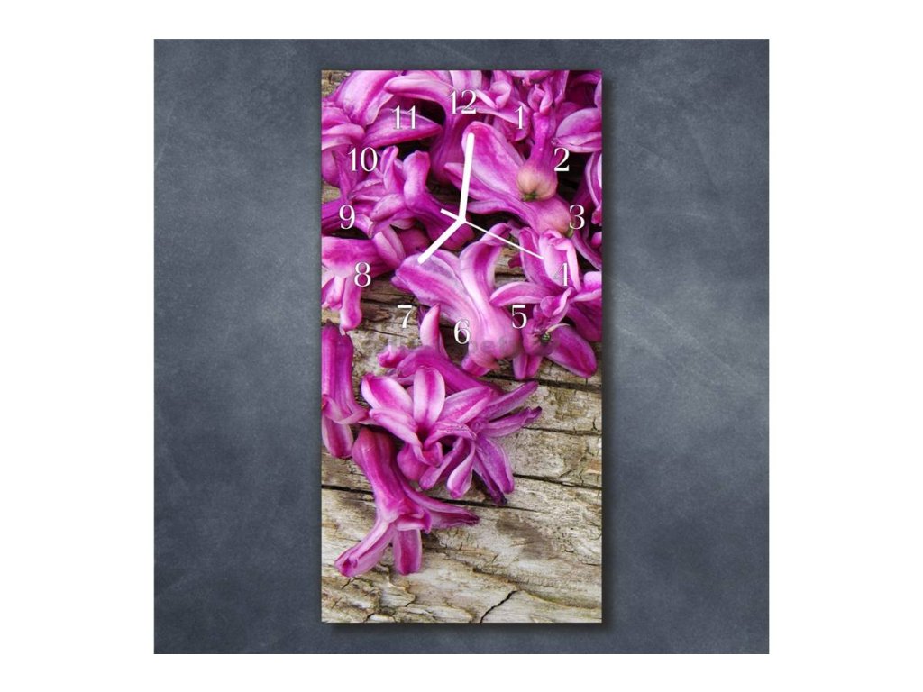 Nástěnné hodiny obrazové na skle - Růžové zvonky
