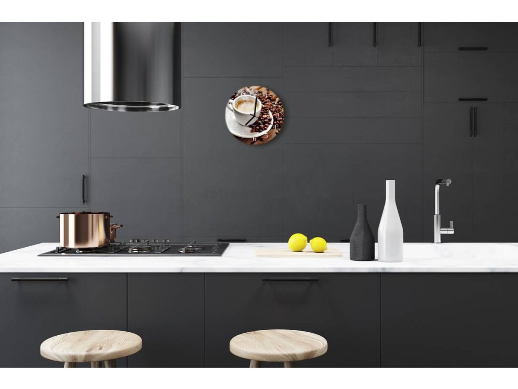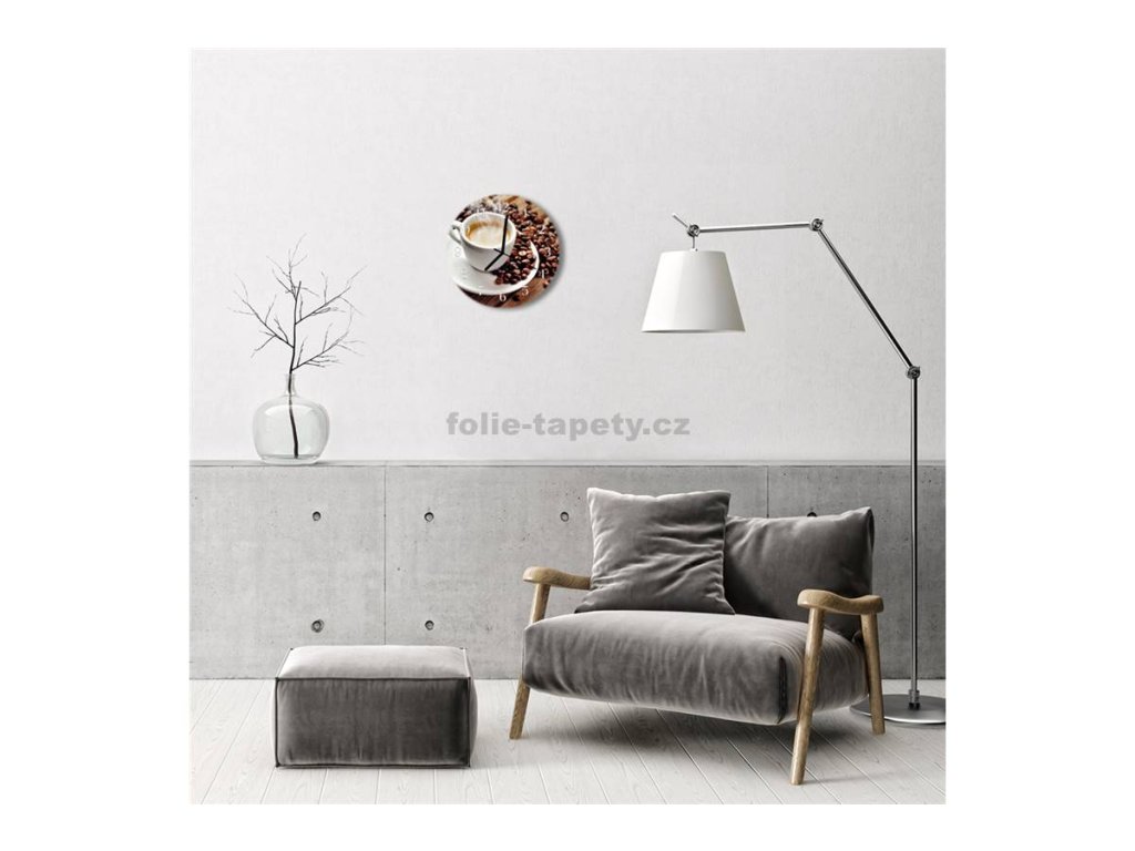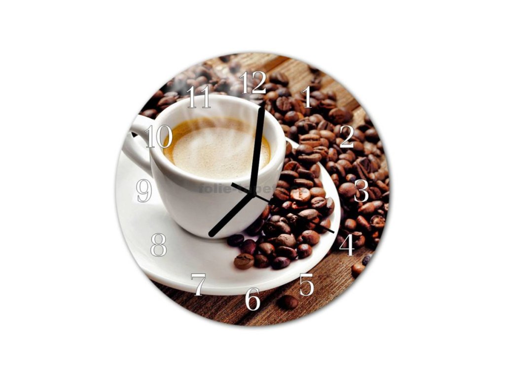 Nástěnné hodiny obrazové na skle - Šálek s kávou
