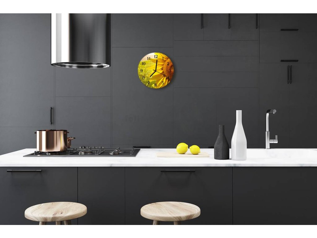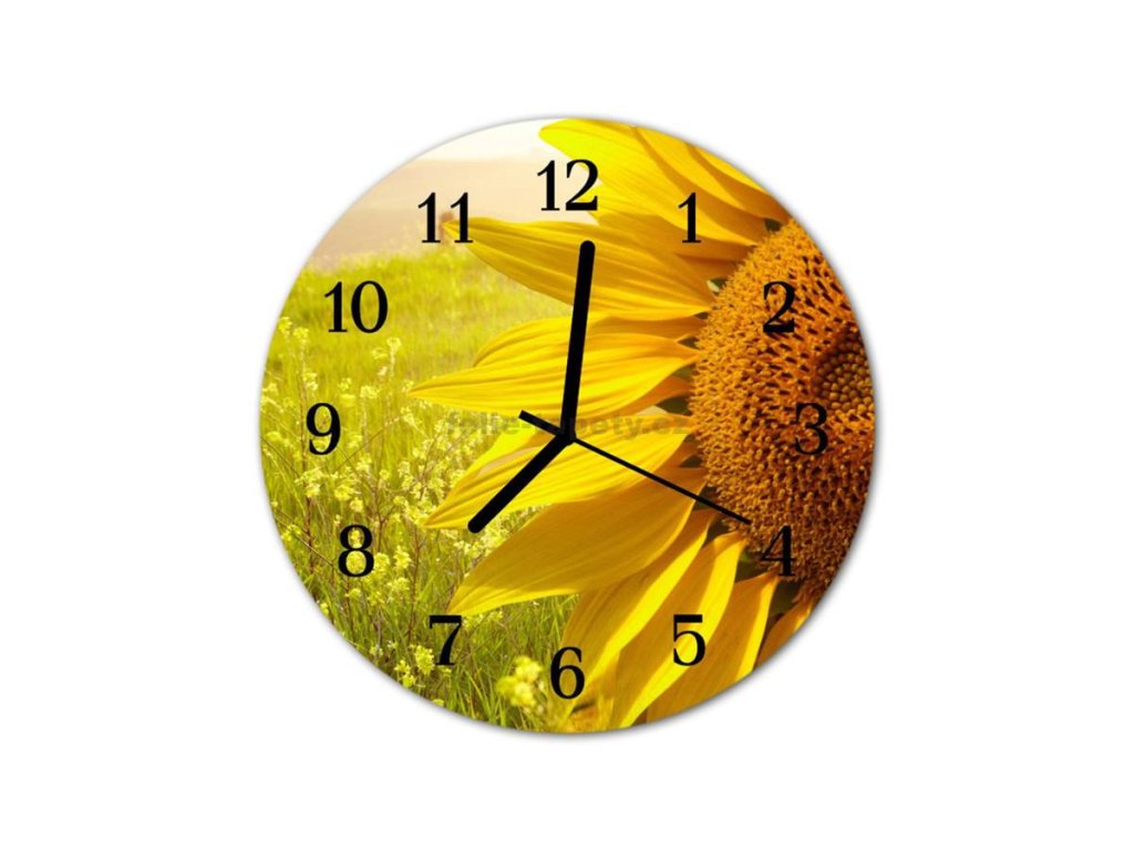 Nástěnné hodiny obrazové na skle - Slunečnice II