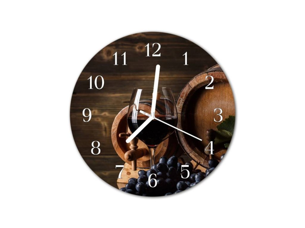 Nástěnné hodiny obrazové na skle - Sudy s vínem