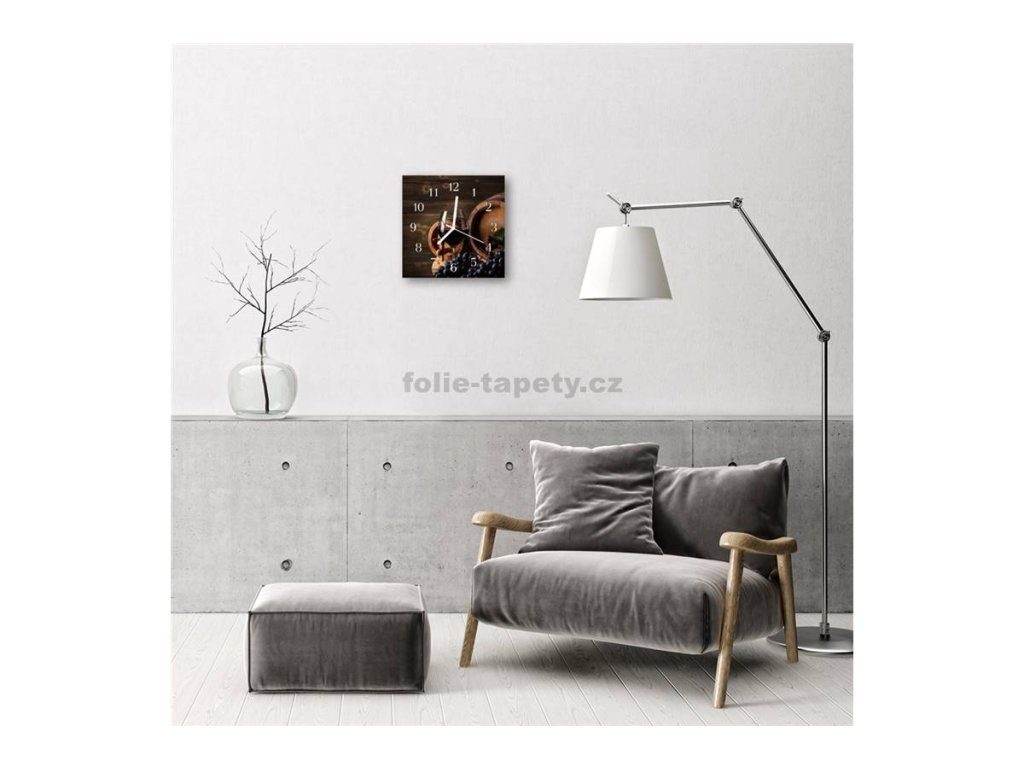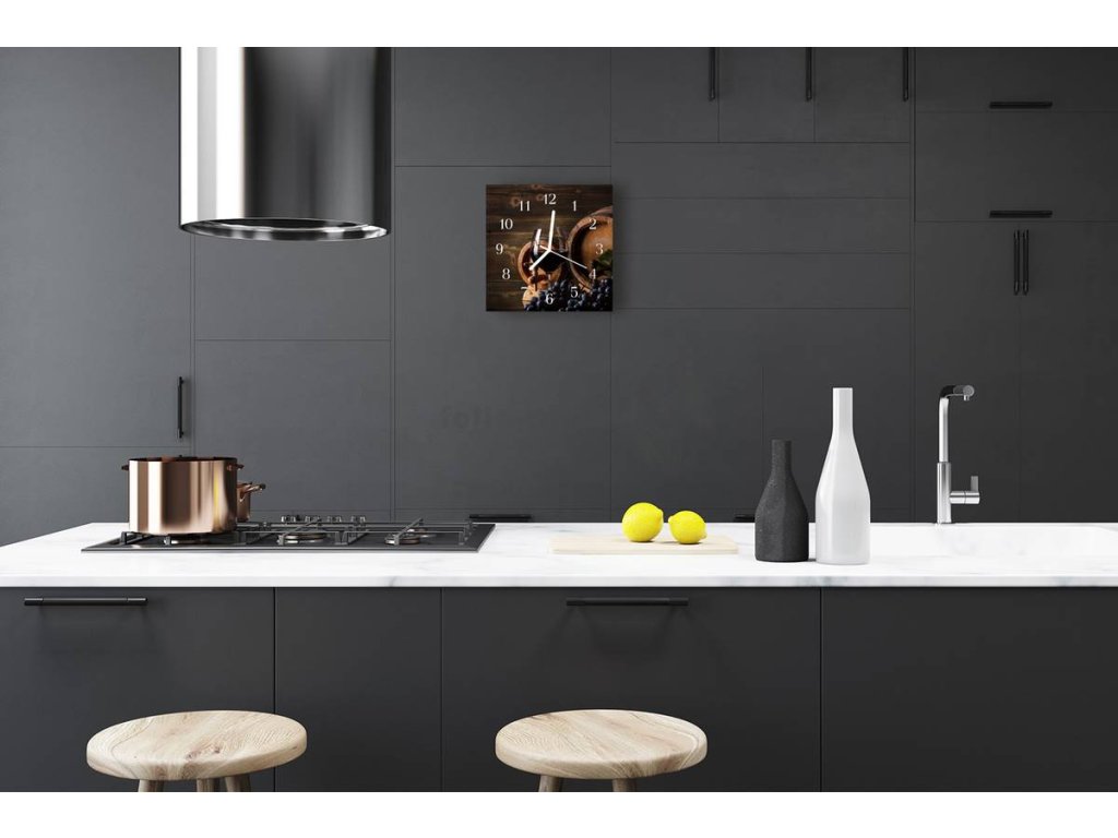 Nástěnné hodiny obrazové na skle - Sudy s vínem