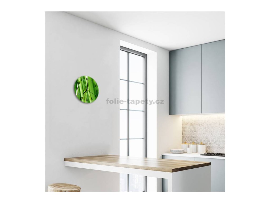 Nástěnné hodiny obrazové na skle - Tráva I