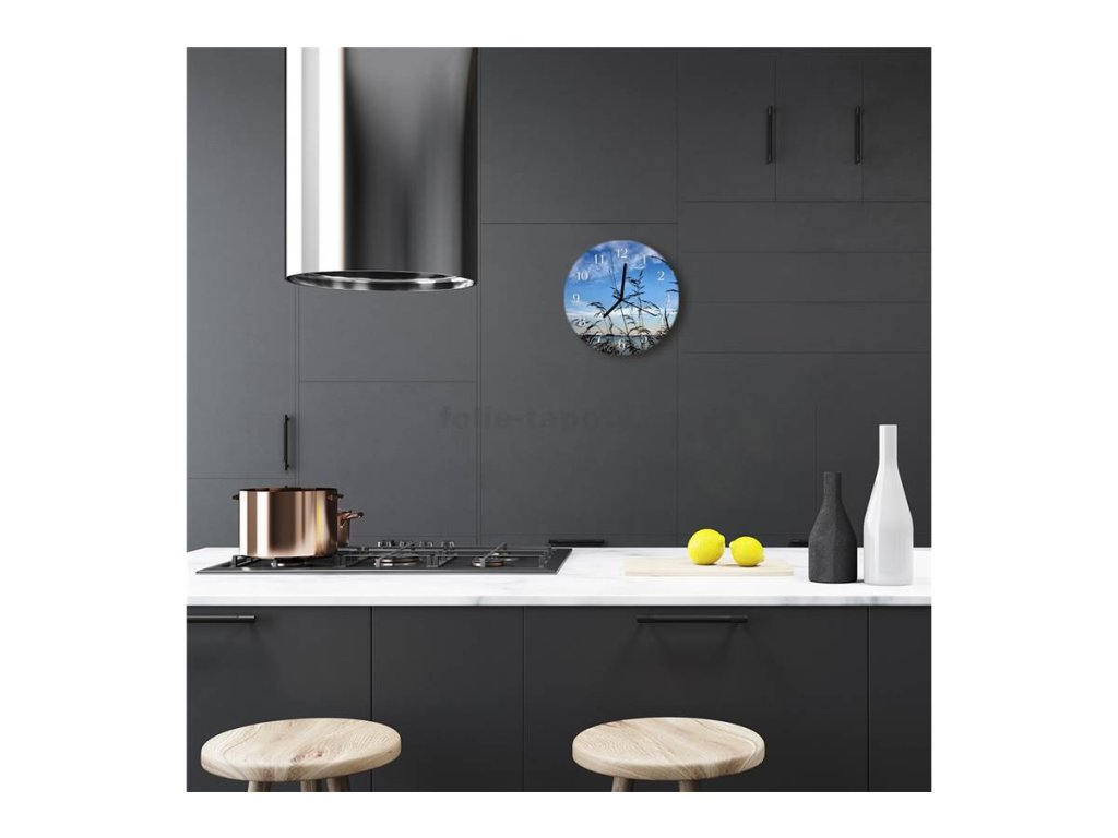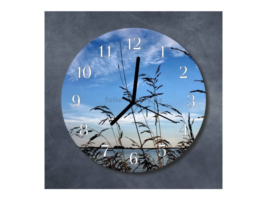 Nástěnné hodiny obrazové na skle - Tráva u jezera