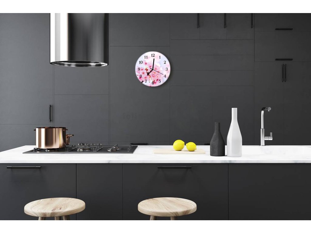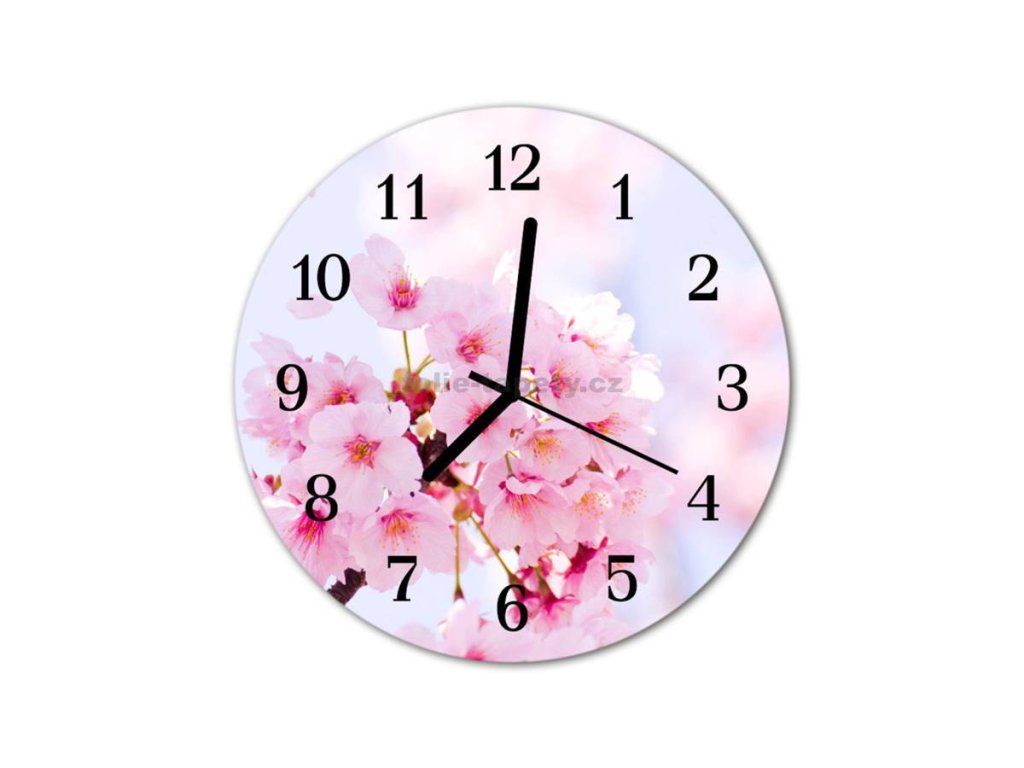 Nástěnné hodiny obrazové na skle - Třešňové květy I