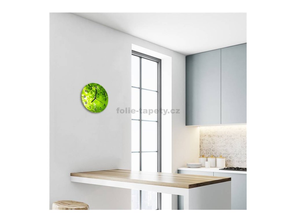 Nástěnné hodiny obrazové na skle - Zelené listy