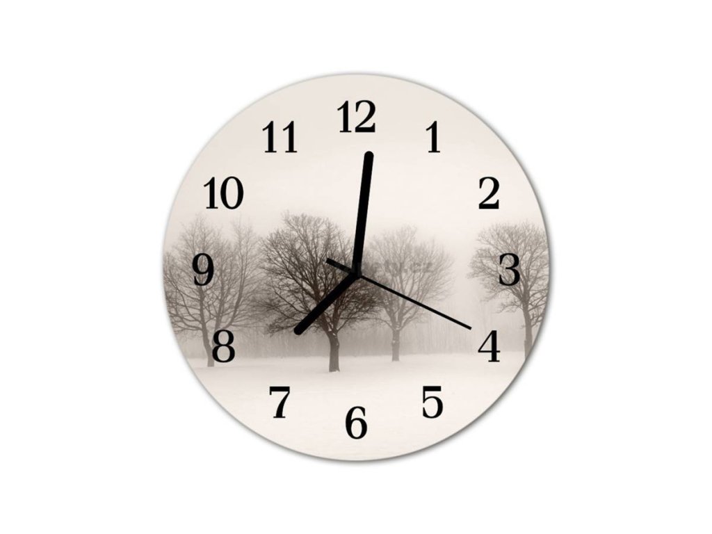 Nástěnné hodiny obrazové na skle - Zimní krajina