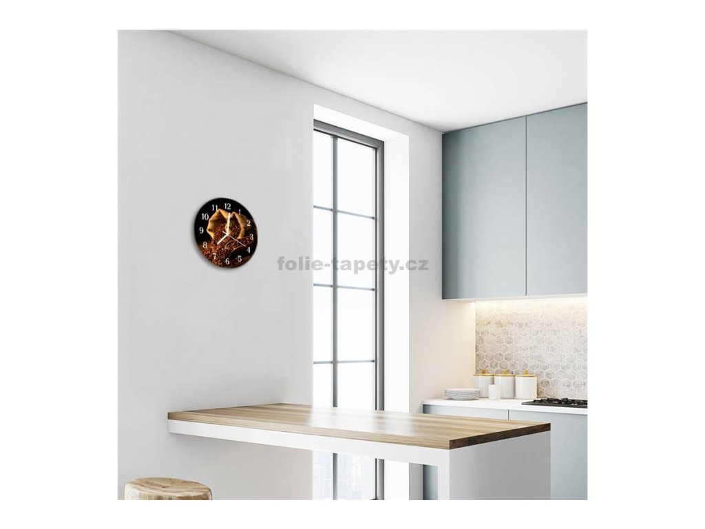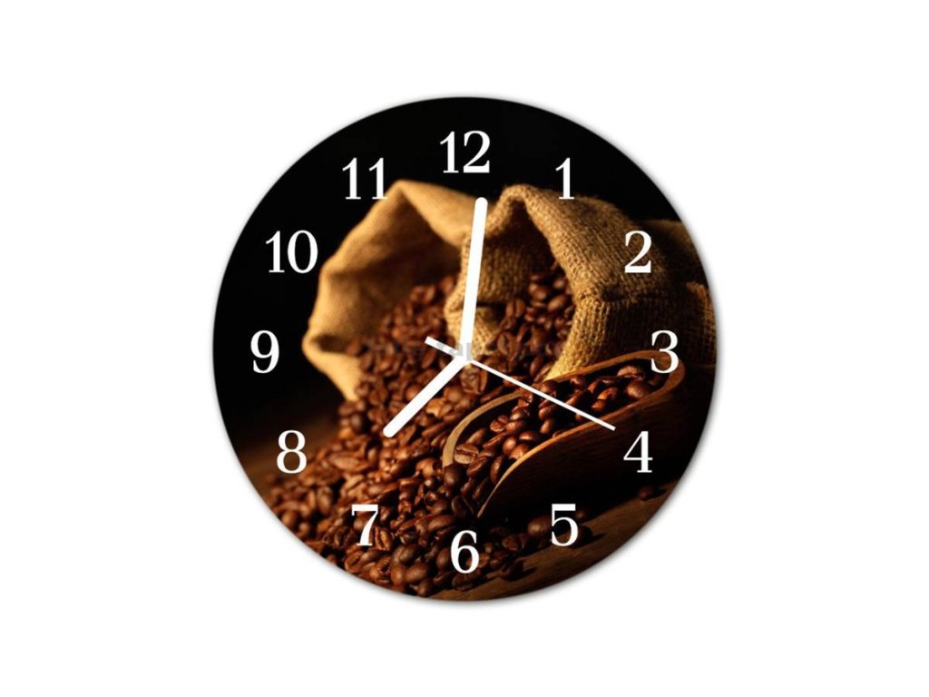 Nástěnné hodiny obrazové na skle - Zrnka kávy
