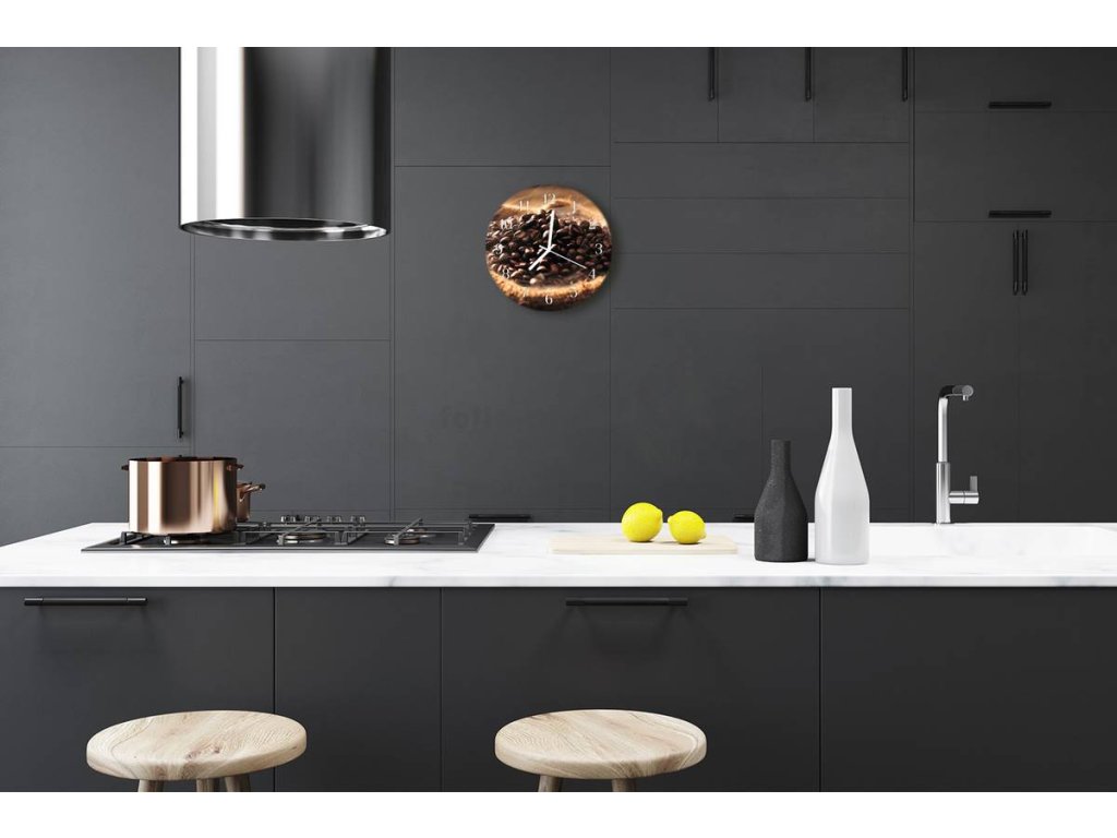 Nástěnné hodiny obrazové na skle - Zrnka kávy I