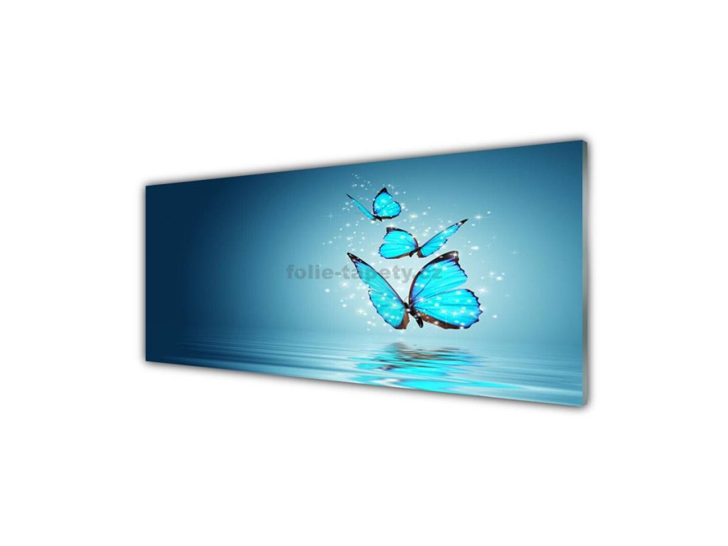 Obraz na skle - Motýli modří 100 x 50 cm