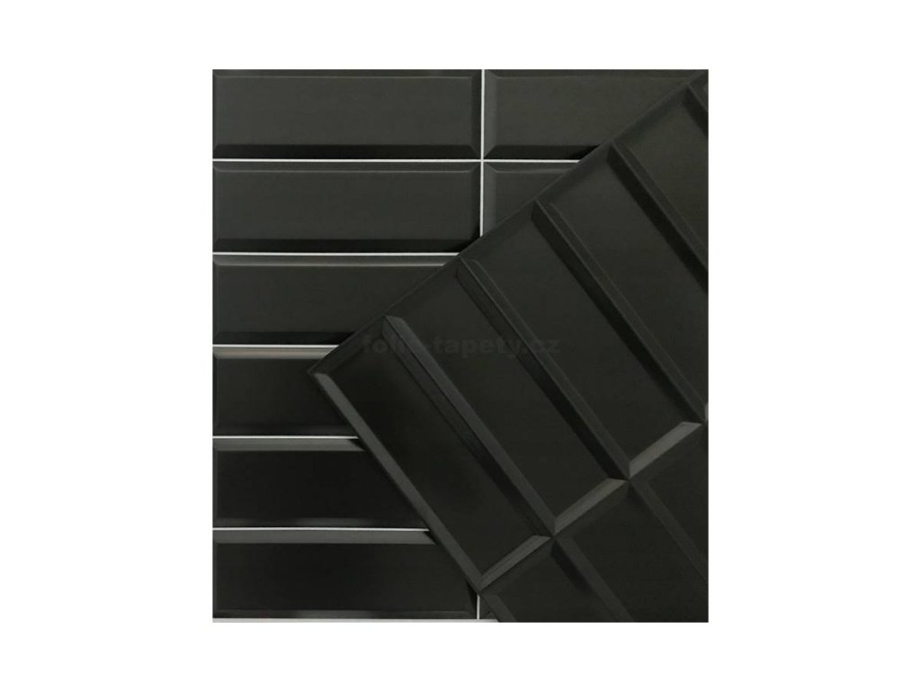 PVC obkladové 3D panely GRACE Černá dlažba matná, šedá spára