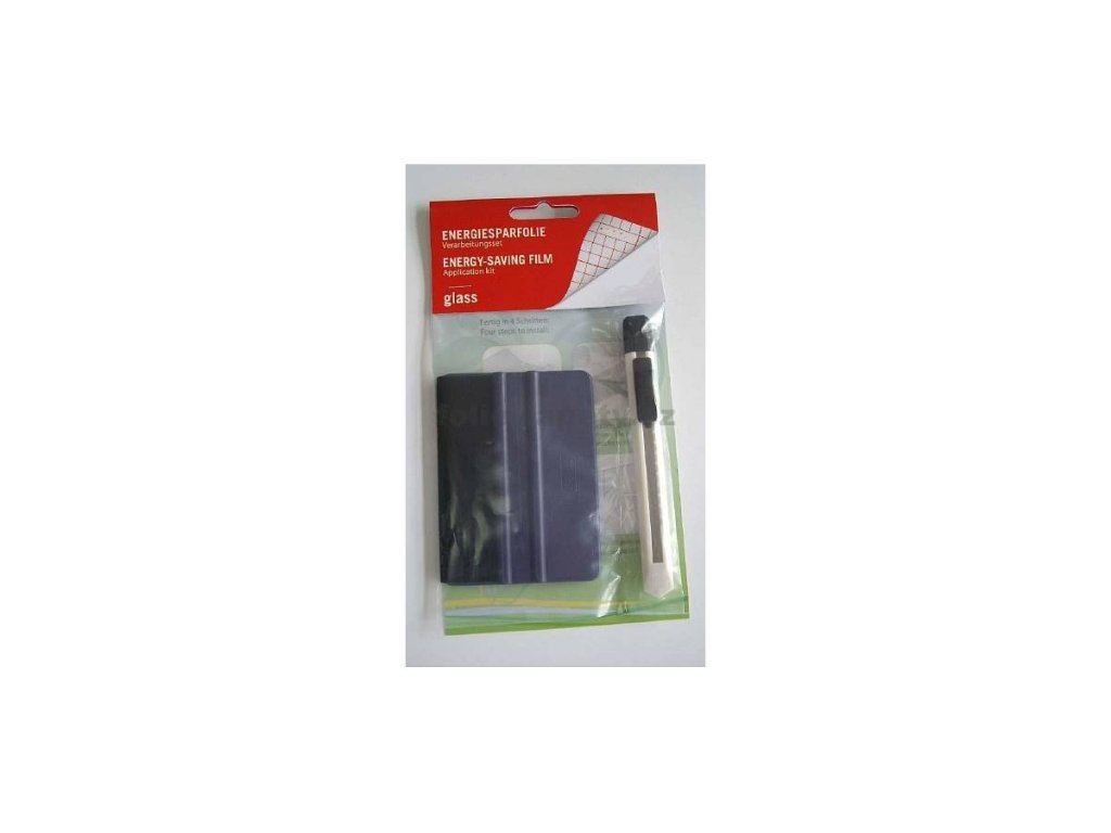 Sada pro aplikaci fólií. Obsahuje 10cm širokou modrou stěrku značky 3M, na jedné straně je filc. Součástí balení je odlamovací nožík s čepelkou 9mm.