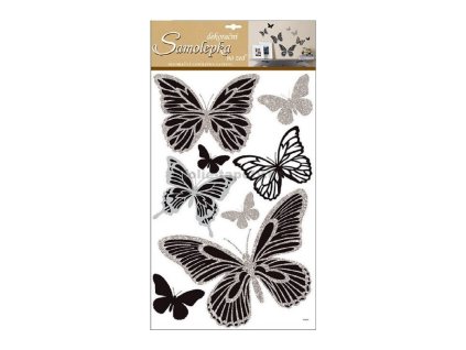 Samolepící pokojová dekorace zrcadlová Motýlci s černými flitry