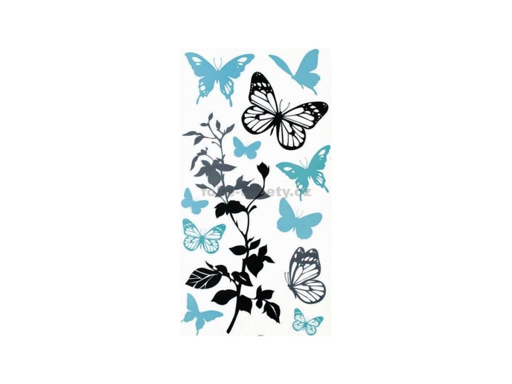 Samolepící pokojová dekorace Motýlci černošedí s tyrkysovou